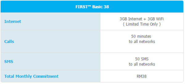 Celcom hari ini menambah satu lagi pelan baru dibawah penawaran pascabayar mereka, iaitu first basic 38 yang mana membawakan pelan pada .